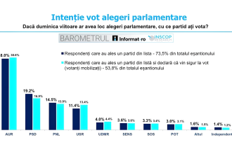Potrivit celui mai recent sondaj INSCOP, partidul AUR rămâne pe primul loc…
