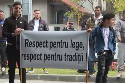 Mai mulți membri ai comunității rome din Târgu Jiu au protestat față…