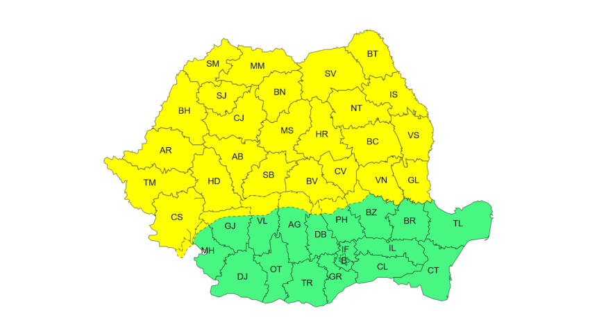 Avertizarea este valabilă începând de mâine, 10 ianuarie, de la ora 20:00, până luni, 12 ianuarie, la ora 10:00.
