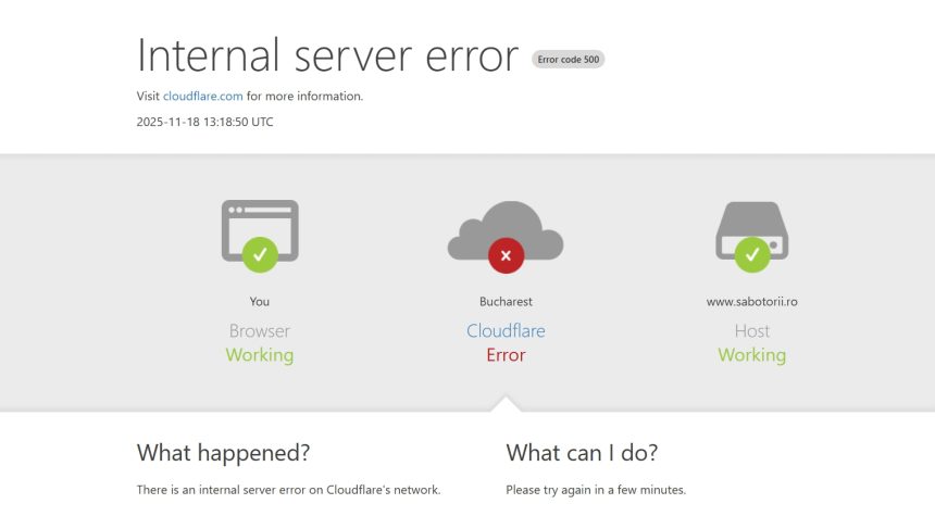 O pană majoră de internet afectează numeroase site-uri web. Problema provine de la o defecțiune în serviciile firmei de infrastructură Cloudflare. Site-ul Downdetector a înregistrat mii de rapoarte de erori începând cu ora 13:30, ora României.