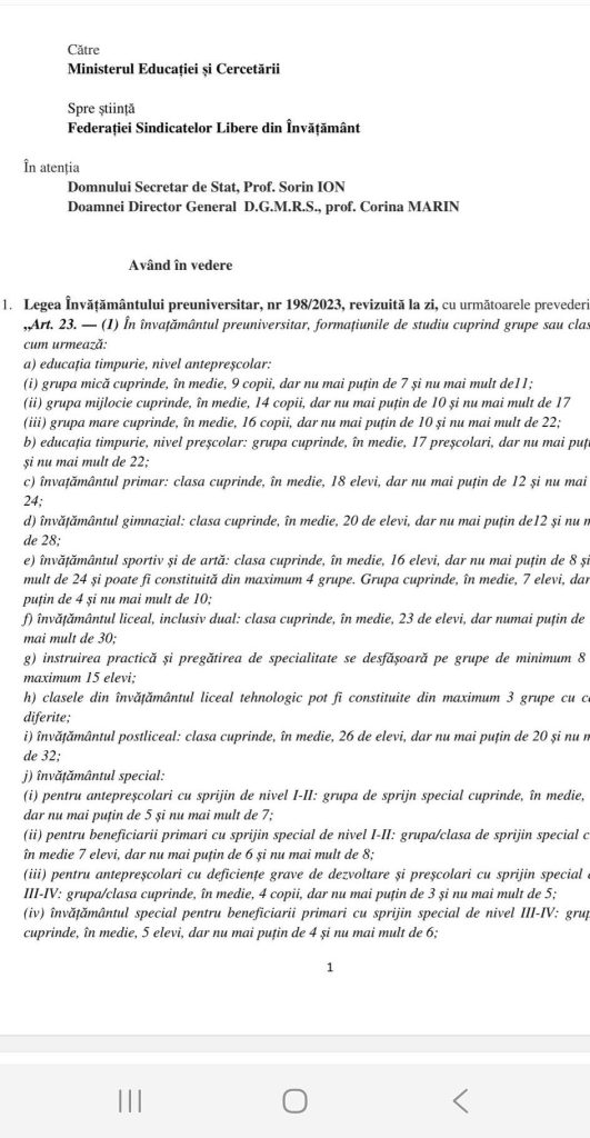 Uniunea Sindicatelor Libere din Învățământ Gorj a sesizat Ministerul Educației privind neconcordanțe între Legea 198/2023 și noua metodologie pentru cifra de școlarizare 2026-2027, care ar impune clase mai mari și ar afecta organizarea rețelei școlare.